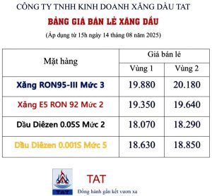 TAT Điều chỉnh giá bán lẻ xăng dầu từ 15 giờ Ngày 14 Tháng 08 Năm 2025
